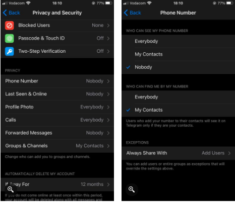Your phone number is not always disclosed in group chats either. You can control how your phone number is seen on Telegram.